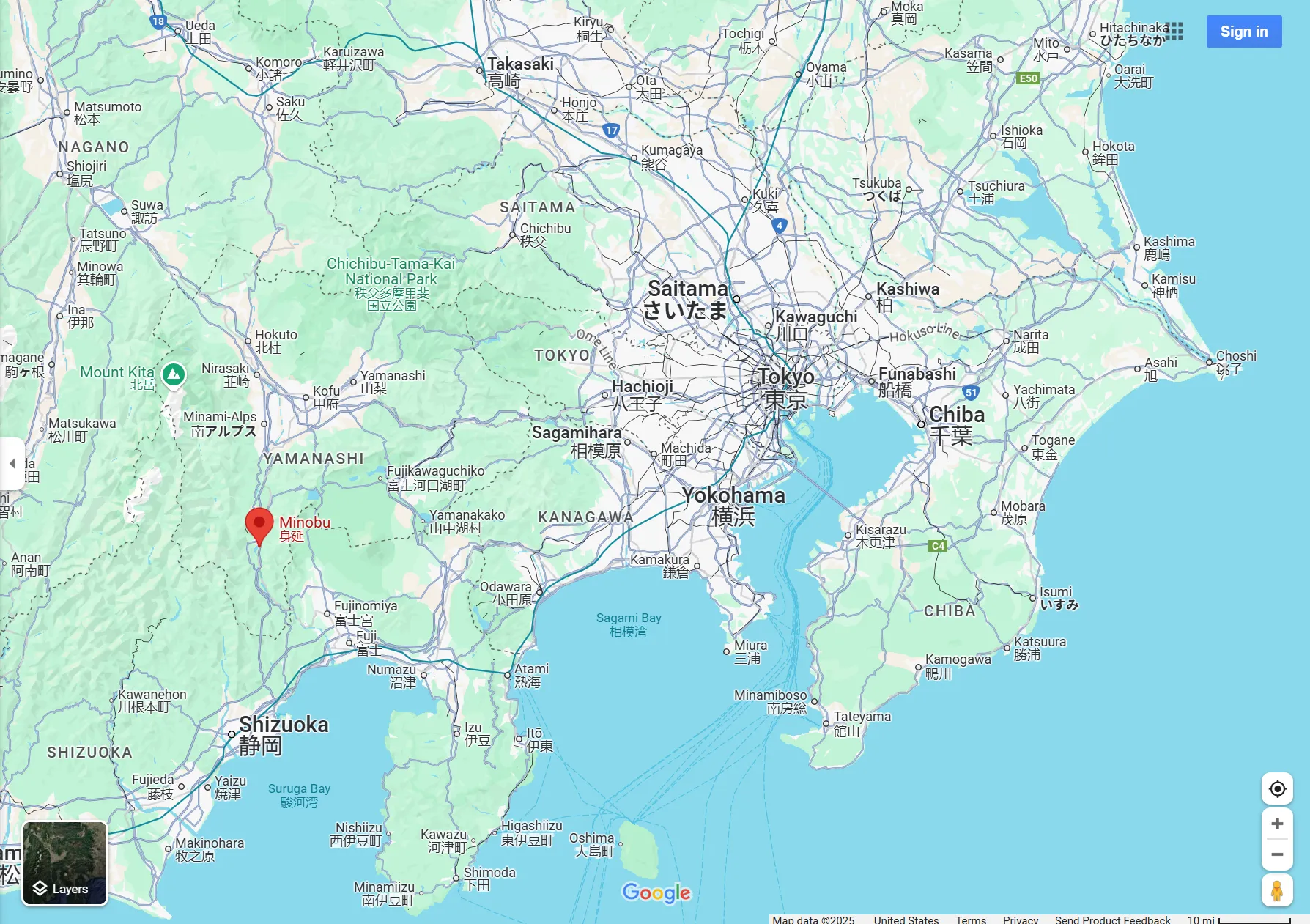 Minobu is located on the west side of Mt.Fuji. You can reach it by train from Tokyo via Kofu.
